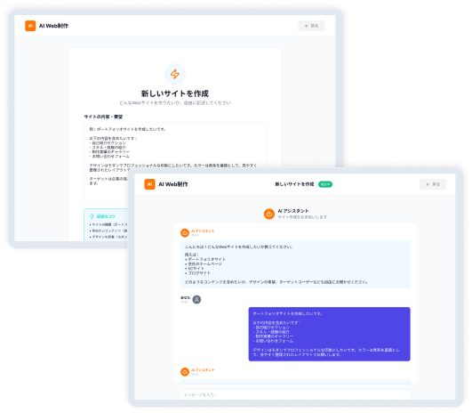 AIがサイトの構成を提案し、デザイン・コーディングまで実施してくれます。